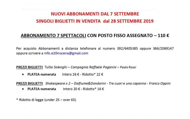 Per info: E20inscena 392 6405385 info.e20inscena@gmail.com