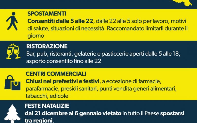 La ristorazione con asporto è consentita fino alle ore 22, con divieto di consumazione sul posto o nelle adiacenze.